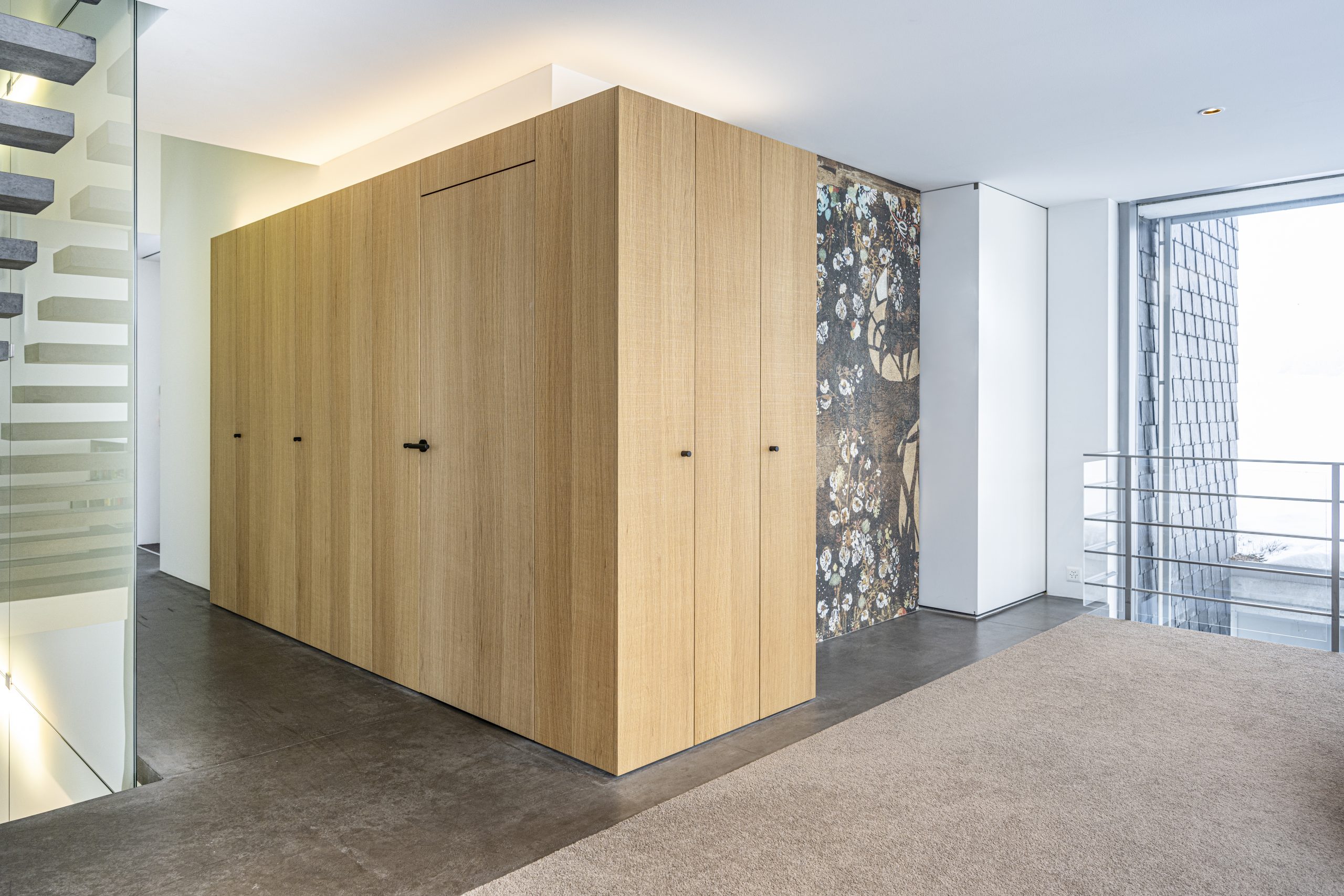 Räume, welche mit Holz ausgebaut sind, erzeugen ein angenehmes Klima. Die Möglichkeiten sind vielseitig, ob furniert oder in natürlicher und massiver Holzoptik. So entstehen vielseitige Anwendungen in unserer Schreinerei, wie beispielsweise Eingangsbereiche, Raumtrennungen, Einbauschränke und natürlich auch Deckenverkleidungen.